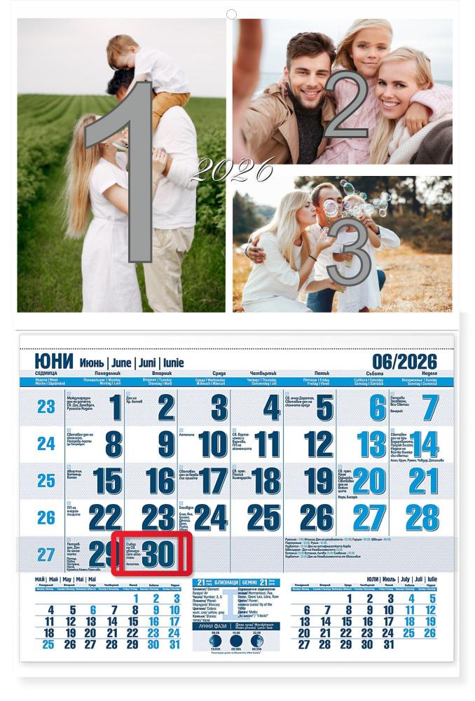 Описание за Календар с 3 снимки - едносекционен