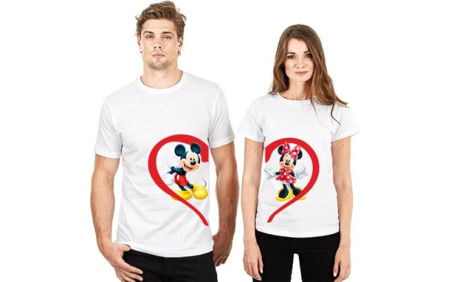 Тениски за двойки с щампи Mickey mouse & Minnie mouse