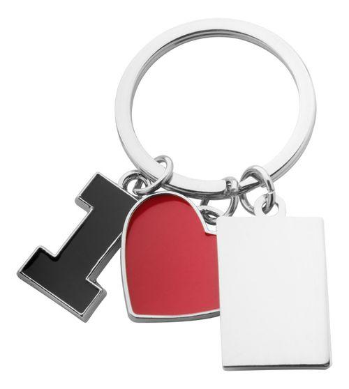 Ключодържател от 3 елемента - Буква I, червено сърце и рекламна плочка идеална за лазерно гравиране. В черна картонена кутия.