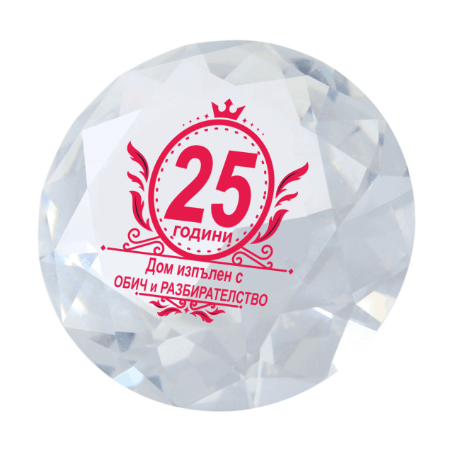 Кристал във форма на диамант. Възможна е промяна в текста