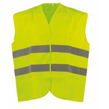 Светоотразителна жилетка с висока степен на видимост и две светоотразителни ленти. Отпред се затваря с велкро. Светоотразителност: Class 2, отговаря на изискванията по EN ISO 13688:2013 y UNE-EN ISO 20471:2013