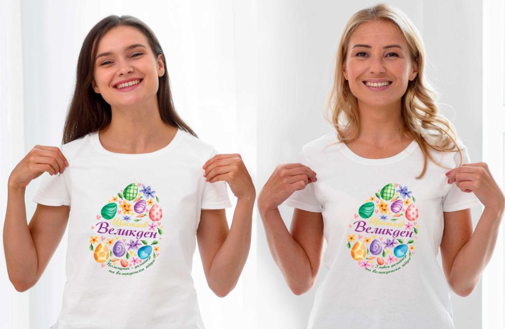 Описание за Тениска с щампа Главен дизайнер на великденски яйца и помощник дизайнер