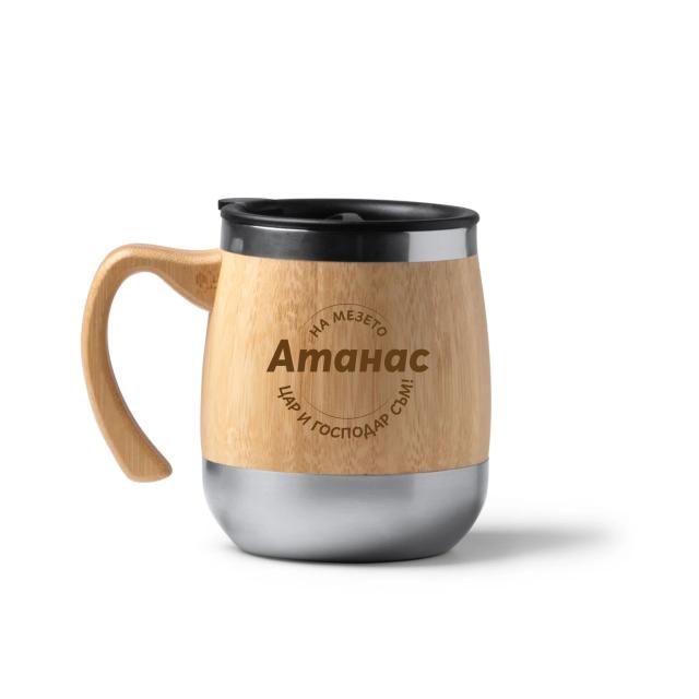 Термочаша от неръждаема стомана и бамбук 450 ml с надпис