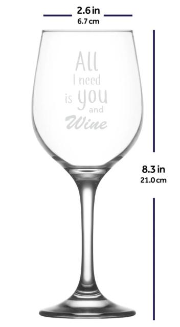 Стъклена чаша за вино с гравиран надпис All I need is you and wine