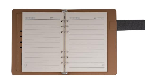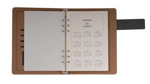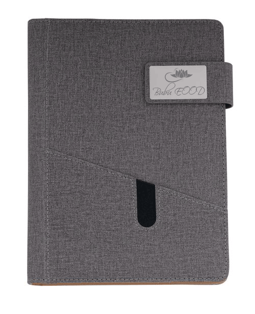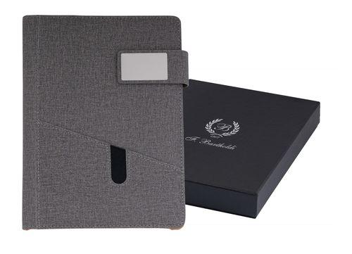 Луксозен бележник - органайзер с твърди текстилни корици, преден и вътрешен джоб за документи, магнитно закопчаване, с метална плочка. Съдържа календар за 2022-2024 г. и 200 броя тонирани страници на редове и точки. В красива подаръчна кутия F.Bartholdi.