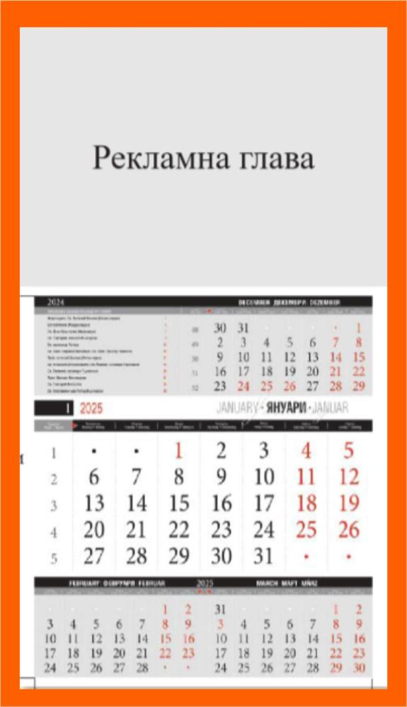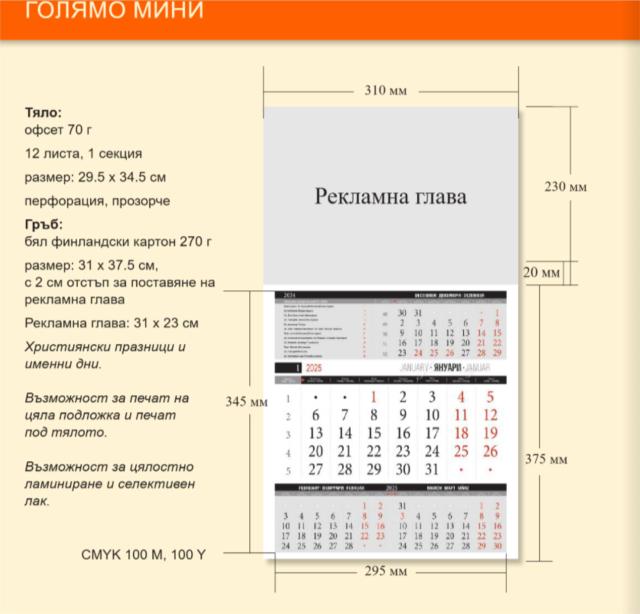 Описание за Календар "МАКС МИНИ" - 1 секционен