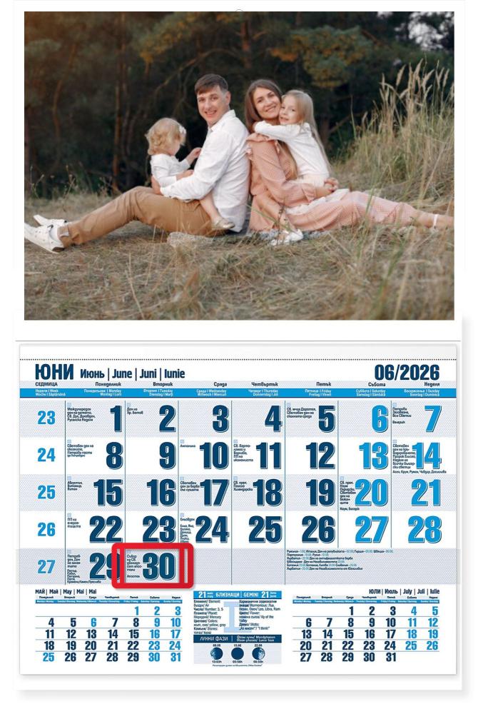 Работен календар със снимка - едносекционен
