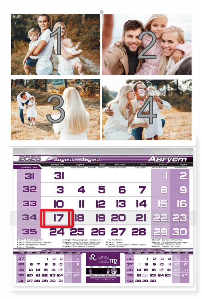 Календар с 4 снимки - едносекционен